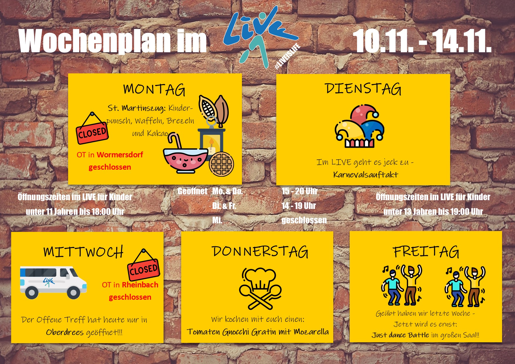 Bitte beachtet unsere Öffnungszeiten: