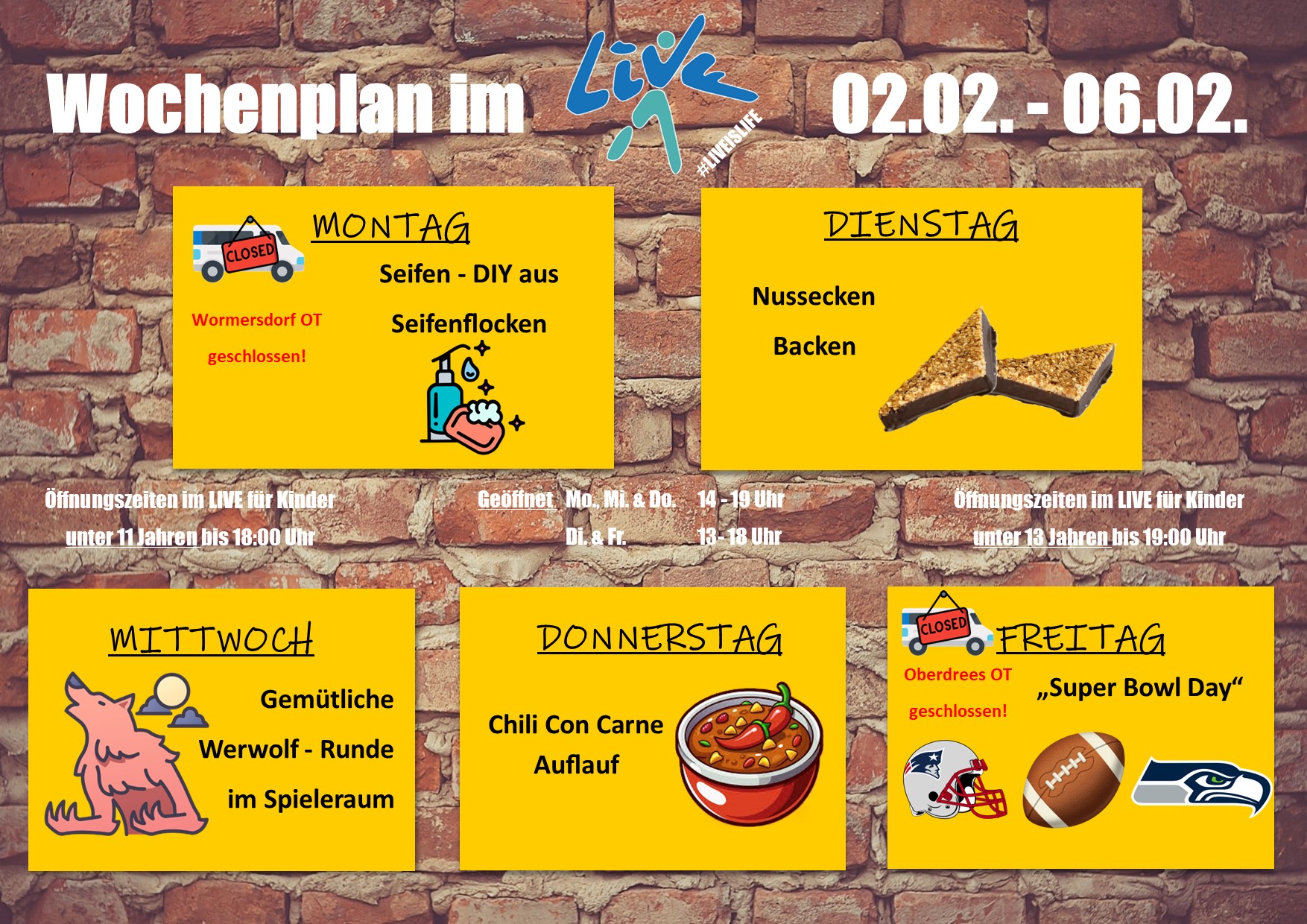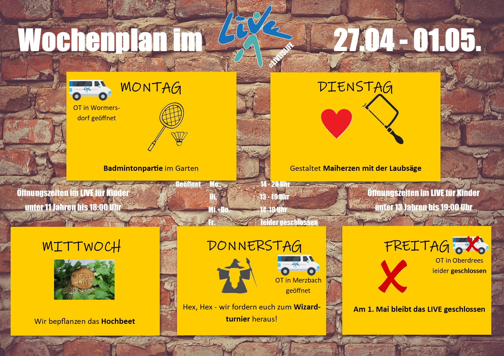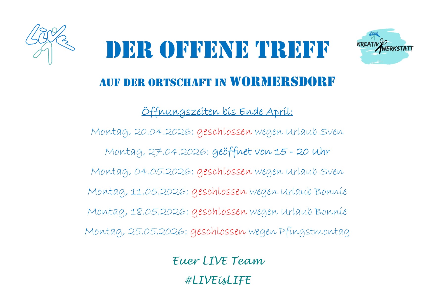Bitte beachtet unsere NEUEN Öffnungszeiten: